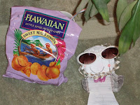 Here is Stanley enjoying a a day of sun-bathing in Hawaii. See. You can tell it's really Hawaii because of the Sweet Maui Onion Hawaiian potato chips next to him. Also the "palm tree" is a dead give away.
